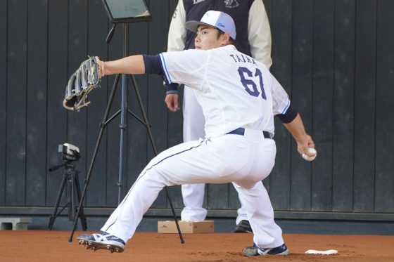 この日のブルペンでは、ラプソードとトラックマンでデータを取りながら投球。平良が「カーブが160キロを計測した!」と声を上げ、球を受けていたブルペン捕手が「それじゃ、ストレートは180キロ出るね」とジョークで応じる一幕があった。