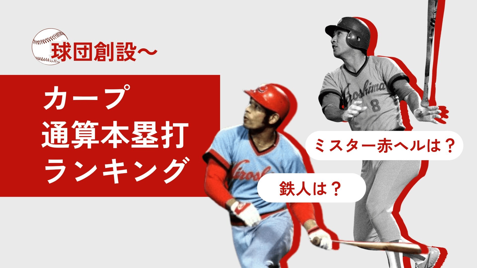 トップ2の山本浩二と衣笠祥雄は、球界で8人しかいない500本塁打をクリアした。3位には295本の前田智徳がつけた。トップ10入りした江藤智、金本知憲、新井貴浩、水谷実雄は広島在籍時に200本塁打以上を放ち、移籍先でも本塁打を積み重ねた。