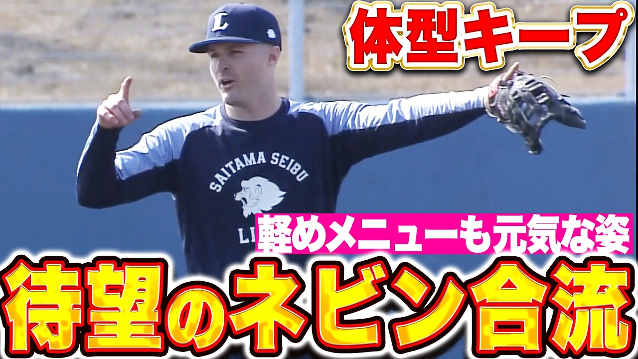 埼玉西武・ネビンが待望の合流!! 初日は軽めの調整となったものの、グッドシェイプをキープしており、動きも良好。お昼には特打と特守をこなし、最後は高々とサムズアップ👍