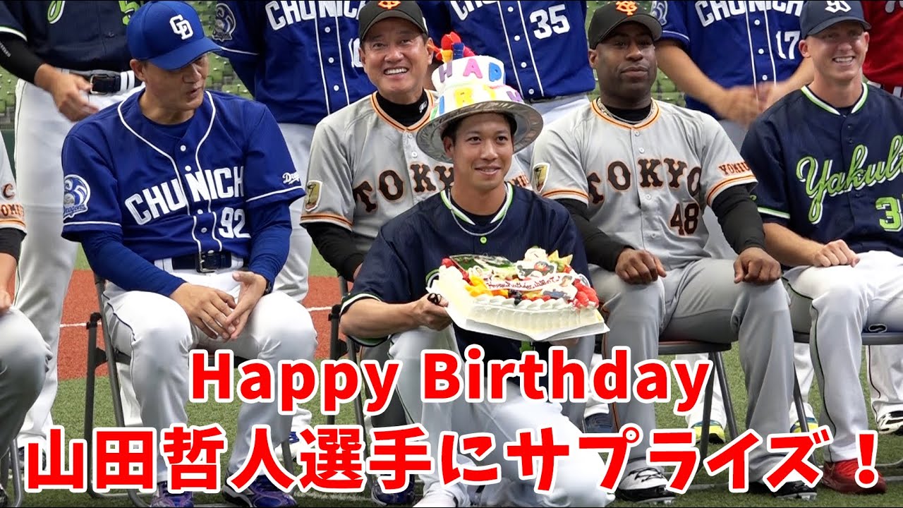 試合前にバースデーケーキが手渡され、皆で山田哲人選手の29歳の誕生日を祝福しました!