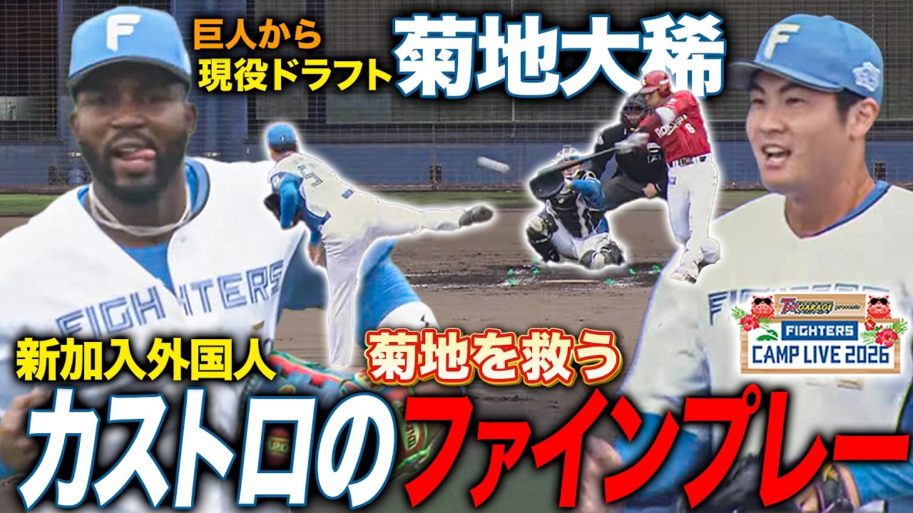 菊地大稀vs楽天イーグルス1回全投球!新加入カストロのファインプレーに場内騒然‼️<2/11ファイターズ春季キャンプ2026>