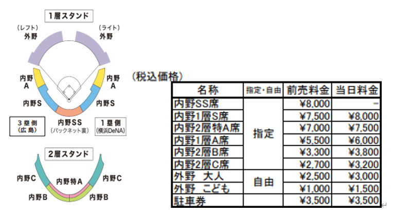 車椅子席は、内野SS席・内野S席・内野A席にございます。料金は各カテゴリーに準じます