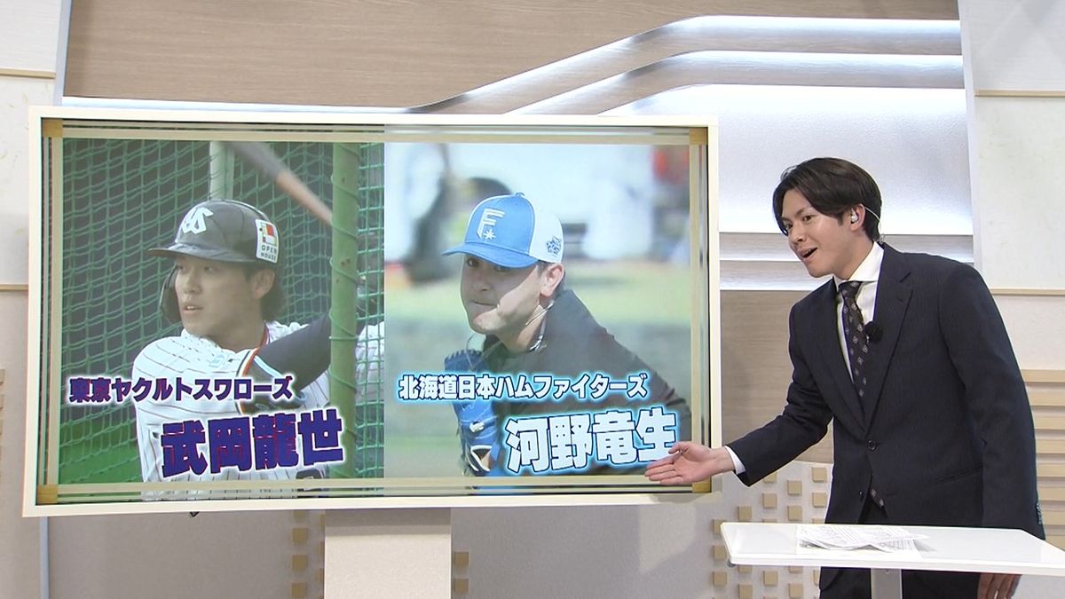 「きょうは、ヤクルトの武岡龍世選手と日本ハムの河野竜生投手です」