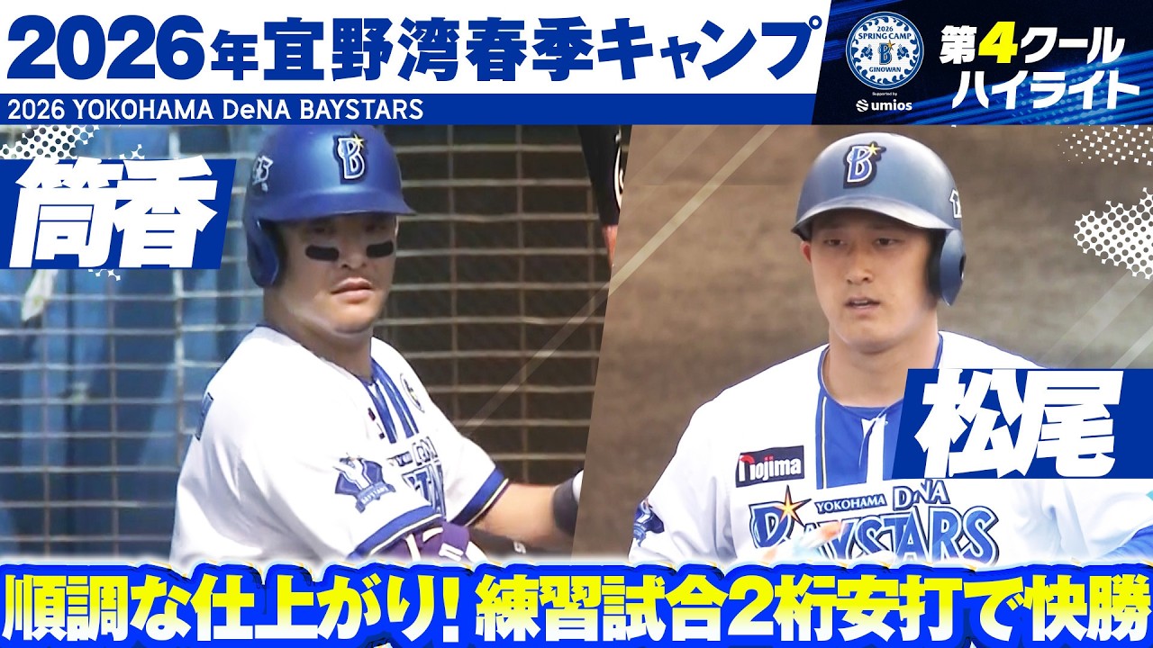 2日目は東京ヤクルトとの練習試合。打線は初回に筒香嘉智の一打や松尾汐恩の適時打などで幸先よく4点を先取する。初回を3者凡退に抑えた竹田祐は3回1失点の好内容。救援陣も4回以降を自責点1に抑え、打線は松尾汐恩が2適時打を含む3安打。九鬼隆平と度会隆輝もマルチ安打と投打が充実、練習試合2戦目も快勝した。