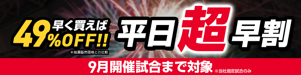 席種はA指定席引換券で、料金は1,980円(税込)。購入の際は、必ず「平日超早割」を選択する必要があり、通常のA指定席を選択すると割引価格にはならない。また、は引換券での販売となるため、観戦当日に入場券との引換が必要となる。