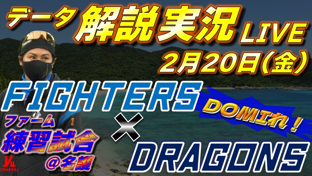 【日ハムライブ】ファーム練習試合 北海道日本ハムファイターズ vs 中日ドラゴンズ 2月20日(金) @名護  データ解説実況LIVE