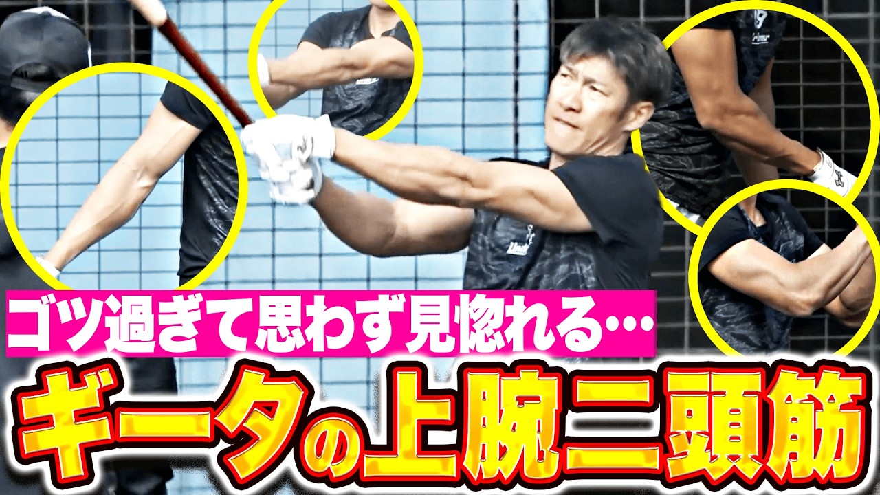 【打球は空の彼方に】柳田悠岐『ギータの上腕二頭筋に見惚れる…豪快ロングティーに釘付け!』