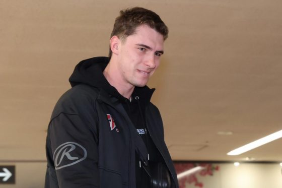 20日に宮崎空港に再来日したフルプは、ユニホーム姿の子どもと笑顔で握手。その傍らには正面に大きく「GIANTS」のロゴが入ったカート付きのバッグがあった。退団後も古巣の備品を大切に使う様子に、SNS上のファンも即座に反応した。