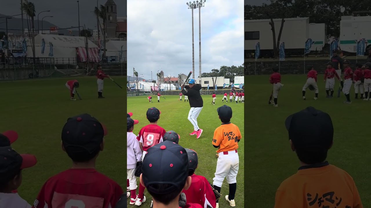 野球教室での一コマ📷子どもたちの前で迫力あるスイングを披露👀 #万波中正 #ドミれ #lovefighters