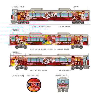 ※画像:「カープ応援ラッピングトレイン2026」デザインイメージ(JR西日本ニュースリリースから)