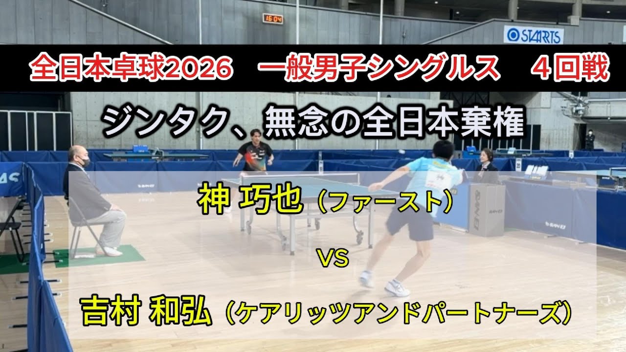 【全日本卓球2026】ジンタク、無念の棄権。 神巧也(ファースト)vs吉村 和弘(ケアリッツアンドパートナーズ) 一般男子シングルス4回戦 天皇杯・皇后杯 2026年全日本卓球選手権大会(一般の部) 男子シングルス4回戦 神巧也(ファースト)vs吉村 和弘(ケアリッツアンドパートナーズ) Hiroshima Toyo Carpジンタク全日本全日本卓球吉村和弘広島東洋カープ棄権神巧也高橋樹也 NPBHUB.COM | The Fanbase of Nippon Baseball & Nippon Professional Baseball