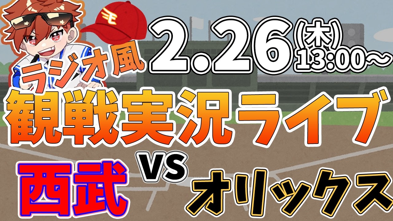オリックスバファローズ VS 埼玉西武ライオンズ オープン戦 2/26【ラジオ実況風同時観戦視聴配信ライブ】