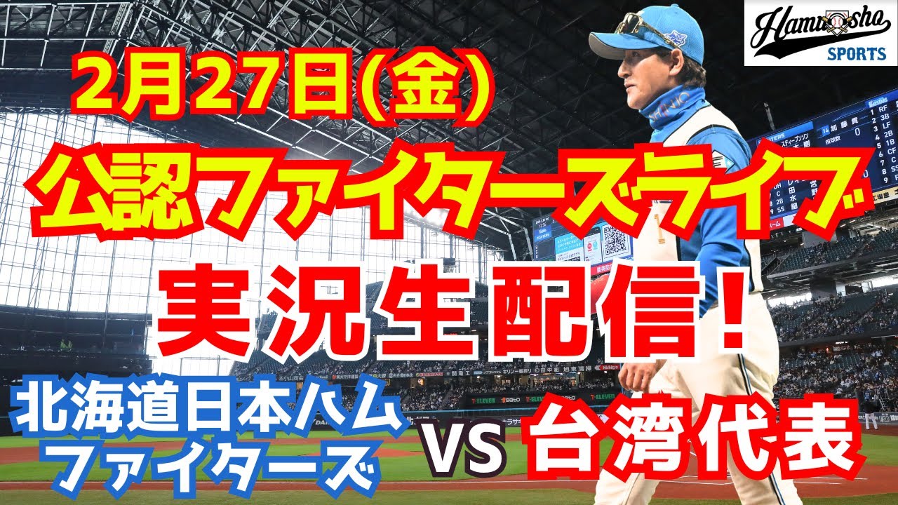 日ハム 日本ハムファイターズ 台湾代表 2026年2月27日 北海道日本ハムファイターズ対台湾代表戦を実況生配信でお送りします。