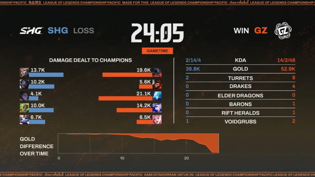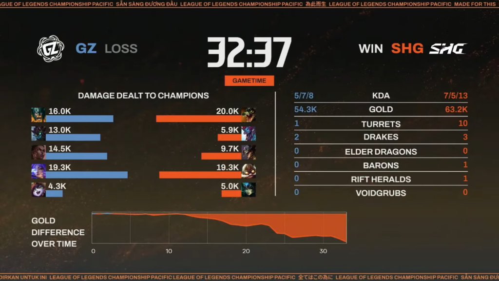 ▲SHG対GZ 第1試合 リザルト(本配信より引用)
