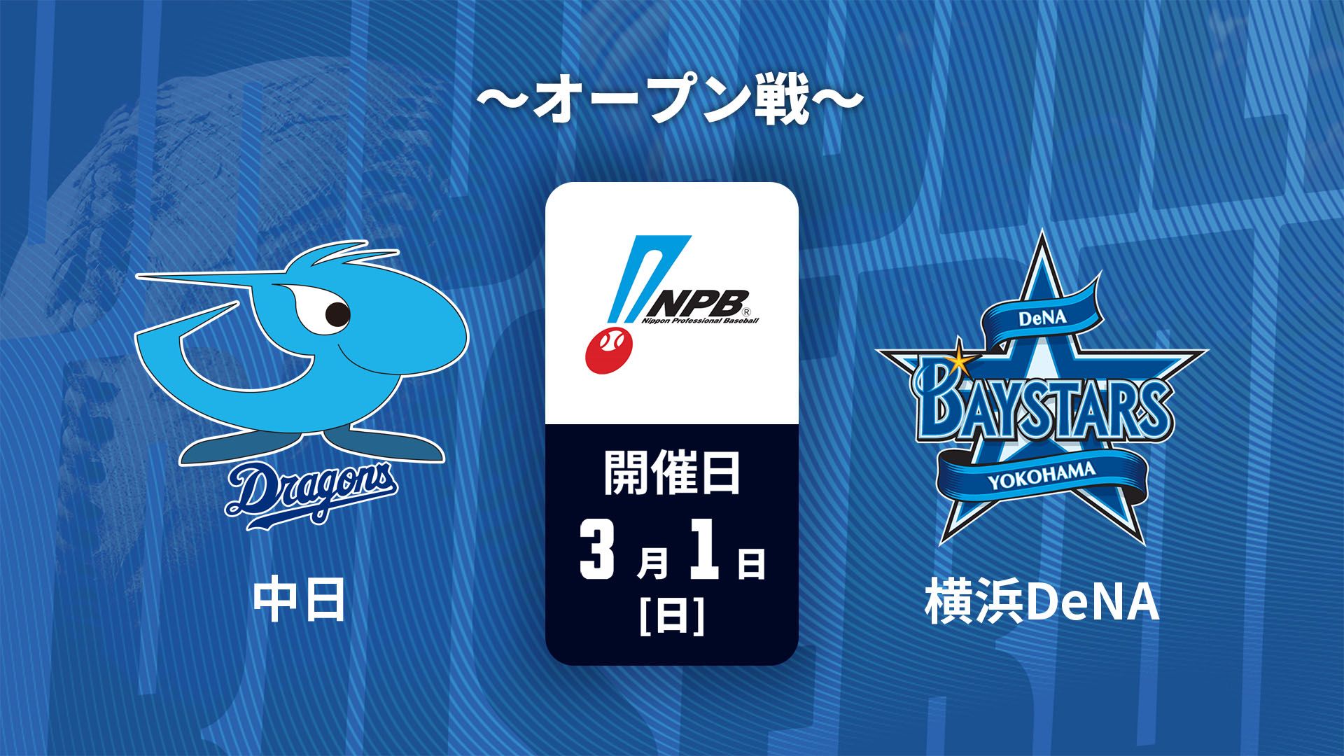 プロ野球は2026シーズンのオープン戦(春季非公式試合)が3月1日(日)に開催。中日ドラゴンズと横浜DeNAベイスターズが対戦する。