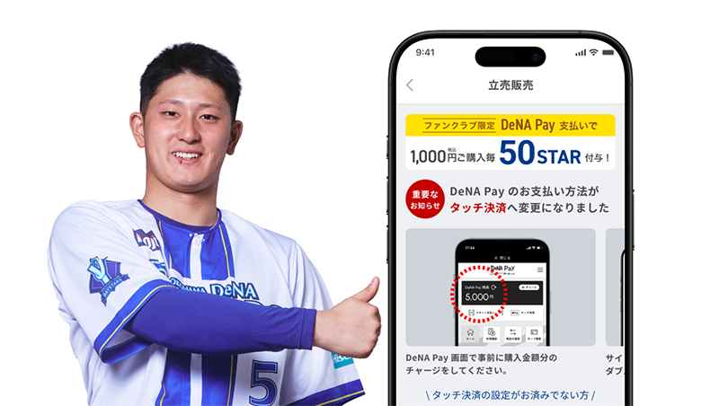 設定方法は「立売販売のバナー」からご確認いただけます。ハマスタでの観戦前に設定して、サクッとお支払いを済ませましょう!