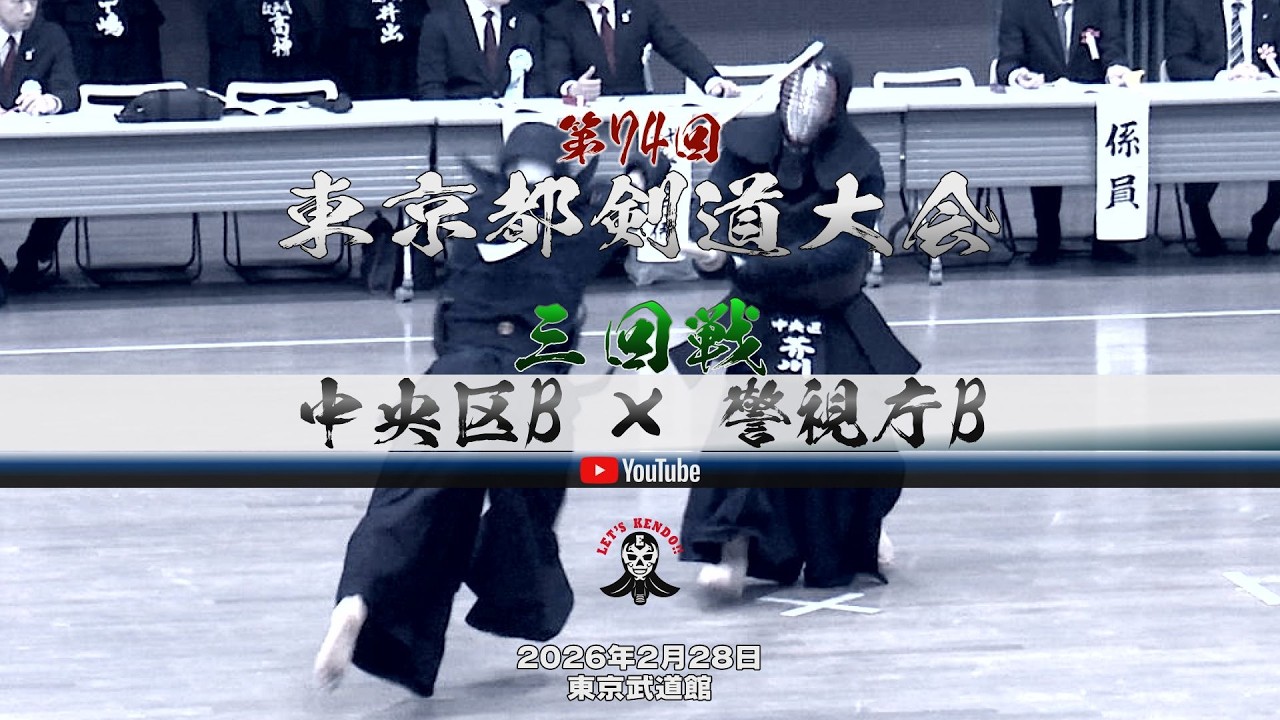 3回戦【中央区B×警視庁B】1竹内×阿部・2芥川×阿部・3藤原×椋梨・4須賀×矢野・5根本×三谷・6江川×加納・7保坂×西野【第74回東京都剣道大会】2026年2月28日