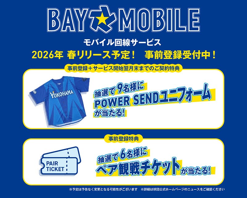 横浜DeNAベイスターズは3日、MVNOサービス「BAY☆MOBILE」を発表した。今春の提供を予定しており、事前登録を受け付けている。料金は、月額1760円~。