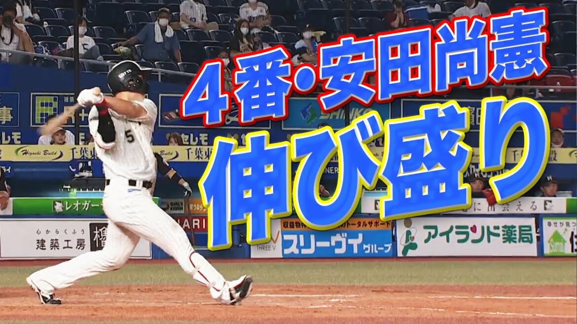 2020/8/14 千葉ロッテ対北海道日本ハムのリーグ公式戦。この選手はどこまでものびしろを感じさせる。千葉ロッテ・安田尚憲が4番スタメン出場で3安打3打点の活躍!お立ち台では「前後を凄いバッターで挟まれているので思い切り振れています」との謙虚ぶり。グングン成長中の若き4番打者のポテンシャルは計り知れない。