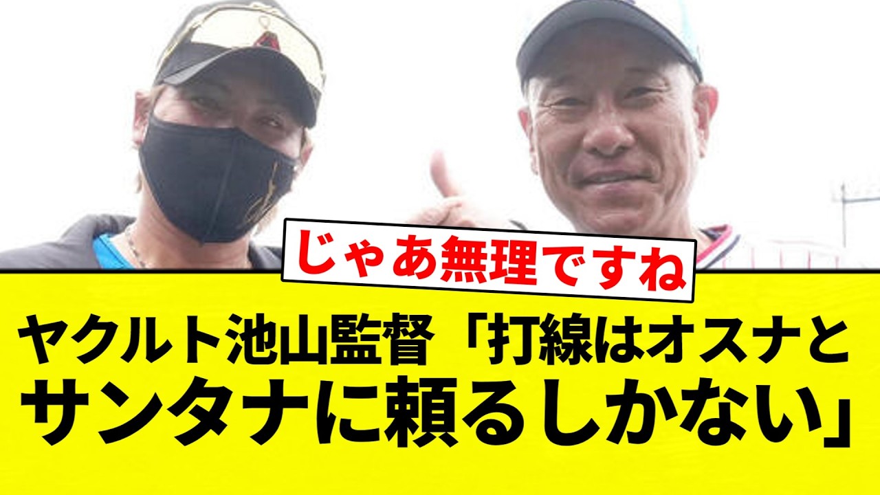 【頼るしか なかったな】ヤクルト池山監督「打線はオスナと サンタナに頼るしかない」【プロ野球反応集】【2chスレ】【なんG】