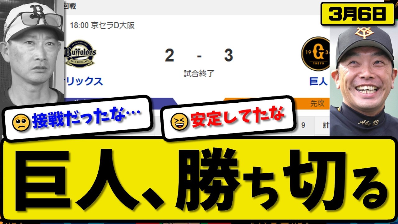 【オープン戦】読売ジャイアンツがオリックスバファローズに3-2で勝利…3月6日勝ち切る…先発山崎4回無失点…ダルベック&佐々木&泉口が活躍【最新・なんJ・2ch】プロ野球 #オリックスバファローズ #読売ジャイアンツ #プロ野球 Yomiuri Giants読売ジャイアンツ NPBHUB.COM | The Fanbase of Nippon Baseball & Nippon Professional Baseball
