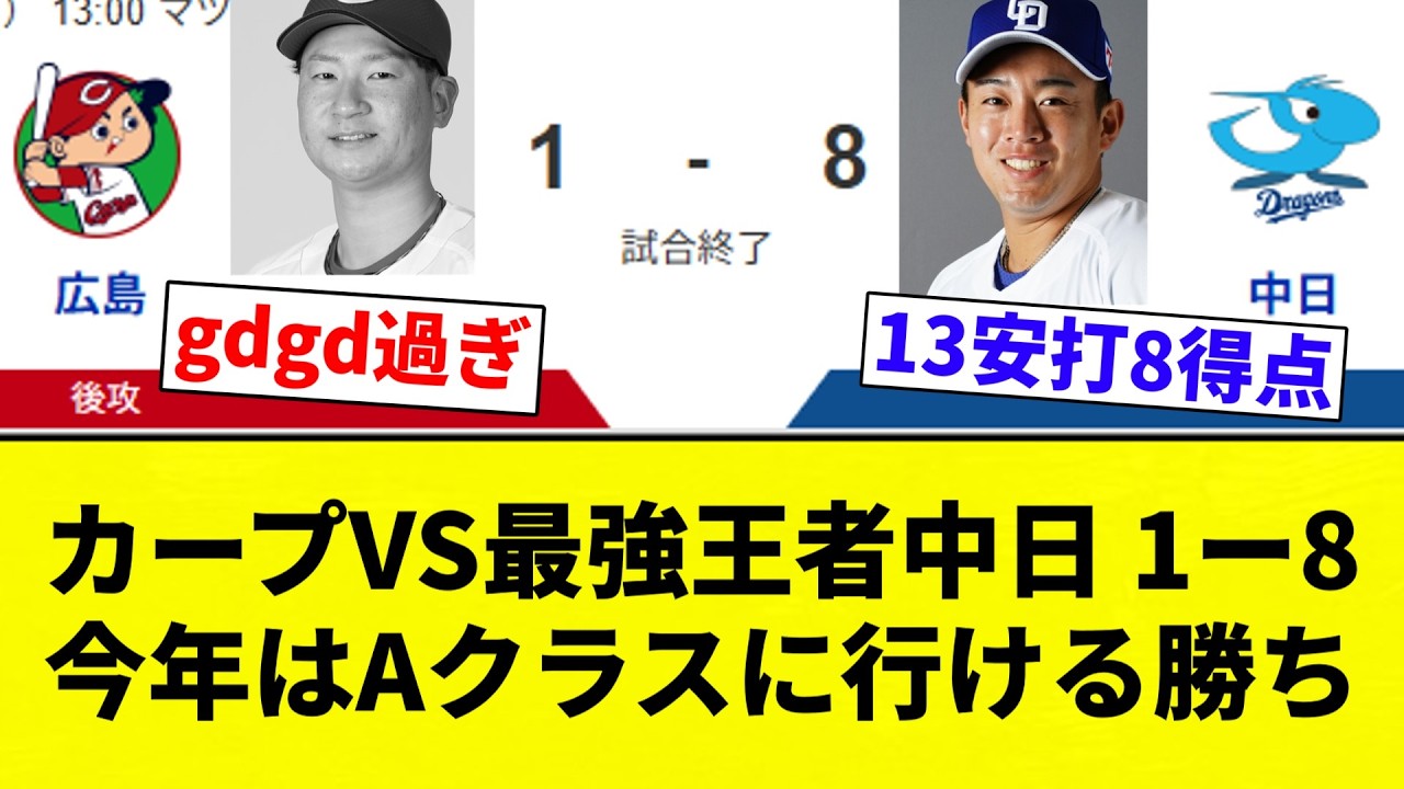 【もうAクラスだよ!】カープVS最強王者中日 1ー8 今年はAクラスに行ける勝ち【プロ野球反応集】【2chスレ】【なんG】