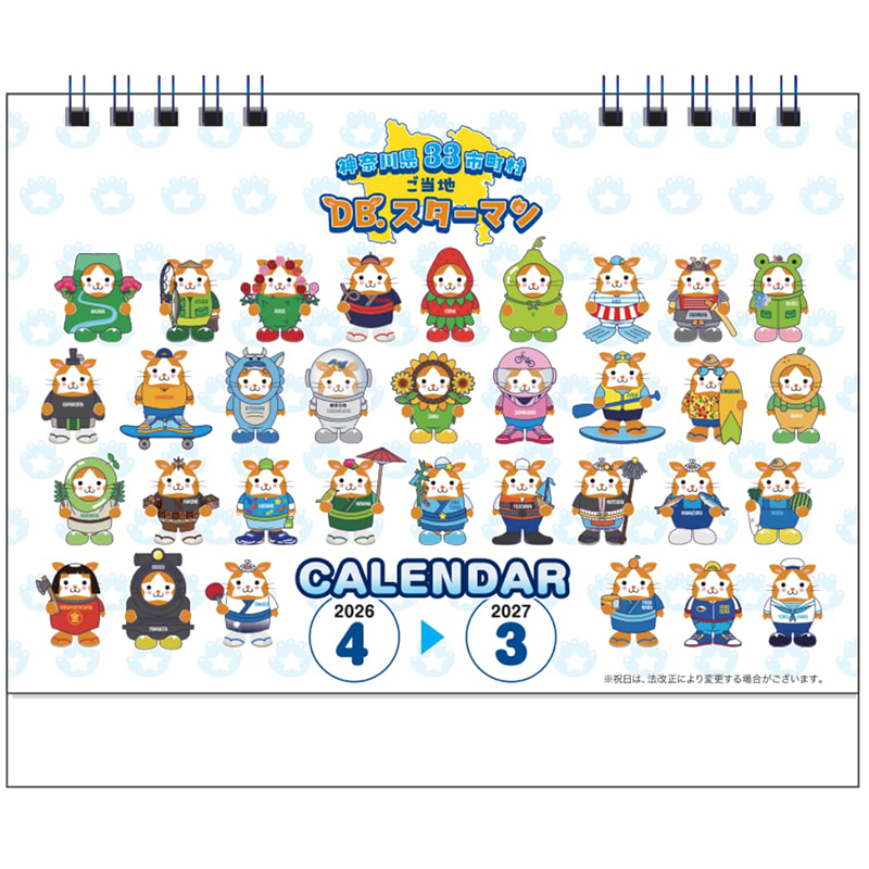 ご当地DB.スターマンの商品に2026年4月から2027年3月まで1年を通して会える卓上カレンダーが登場します。神奈川県の地図でどこにある市町村なのかも同時に学べます。カレンダーを通して神奈川の魅力をマスターしませんか?