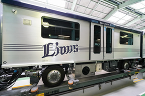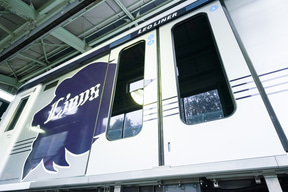 中間車には「Lions」ロゴ
