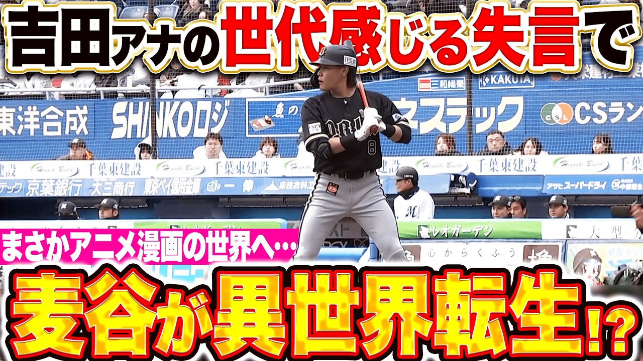 先日の侍ジャイアンツ戦…オリックス・麦谷祐介がまさかの異世界転生!?タイムリープ!? 麦谷が、というより吉田アナが…!? とはいえまあ、7回にしっかりヒットを打って現世に戻ってきたので一安心ですね。