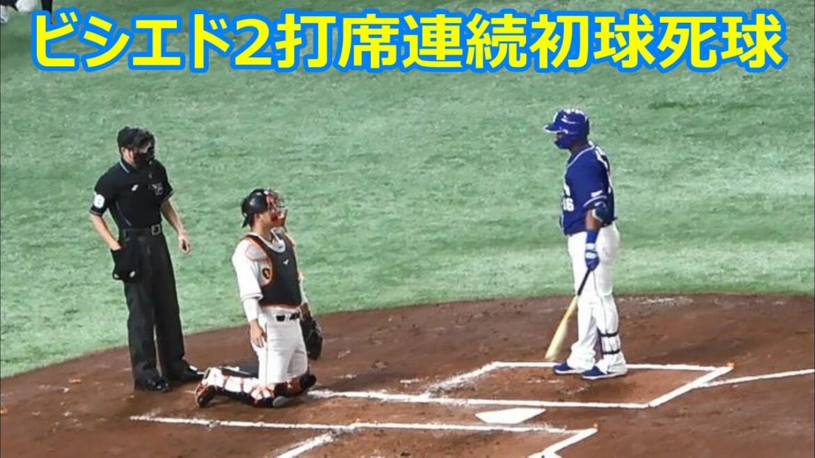 0対0の2回表、先頭のビシエドが死球で出塁(投手:山﨑、捕手:大城)