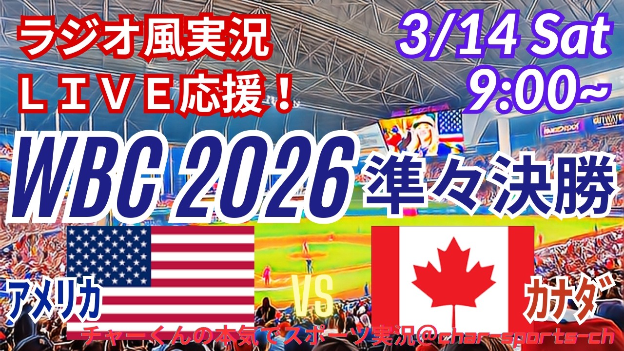【WBC・準々決勝をみんなで一緒に応援!※映像はありません】3/14アメリカvsカナダを皆さんと一緒にチャットで盛り上がりながら応援したいと思います!今後の配信予定はグーグルカレンダーで確認できます。ご自身のGoogleカレンダーと同期してください→https://bit.ly/char-kun