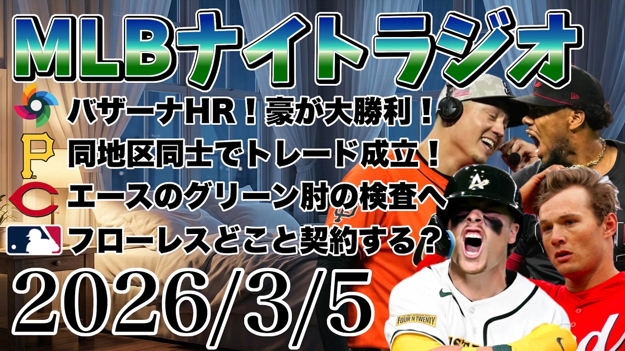 【MLBナイトラジオ#406】バザーナHR!オーストラリア大勝利!パイレーツとレッズがトレード!グリーンが肘の検査へ!フローレスがメジャー契約を待ってます!など#mlb #メジャー #メジャーリーグ
