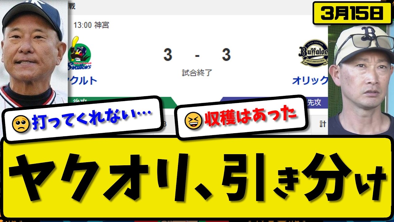 【オープン戦】オリックスバファローズとヤクルトスワローズが3-3で引き分け…3月15日…オリ先発田嶋4回3失点…ヤク先発高梨4.2回1失点…太田&来田&岩田&橋本が活躍【最新・なんJ・2ch】プロ野球 #オリックスバファローズ #ヤクルトスワローズ #プロ野球 ORIX Buffaloesオリックス・バファローズ NPBHUB.COM | The Fanbase of Nippon Baseball & Nippon Professional Baseball