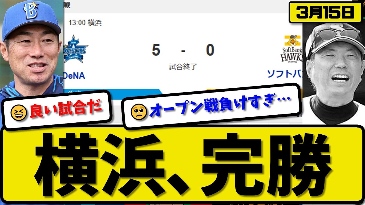 【オープン戦】横浜ベイスターズがソフトバンクホークスに5-0で勝利…3月15日完勝…先発深沢3回無失点…ヒュンメルが満塁ホームランの活躍【最新・なんJ・2ch】プロ野球