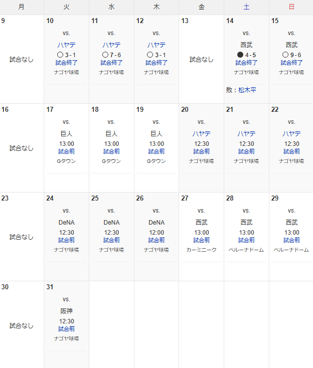 今後の試合日程です。
