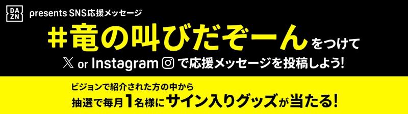 ハッシュタグ「#竜の叫びだぞーん」を付けてXまたはInstagramに写真と応援メッセージを投稿いただくと、バンテリンドーム ナゴヤの106ビジョン(大型スクリーン)に掲載されるかも!(掲載が保証されるものではありません)