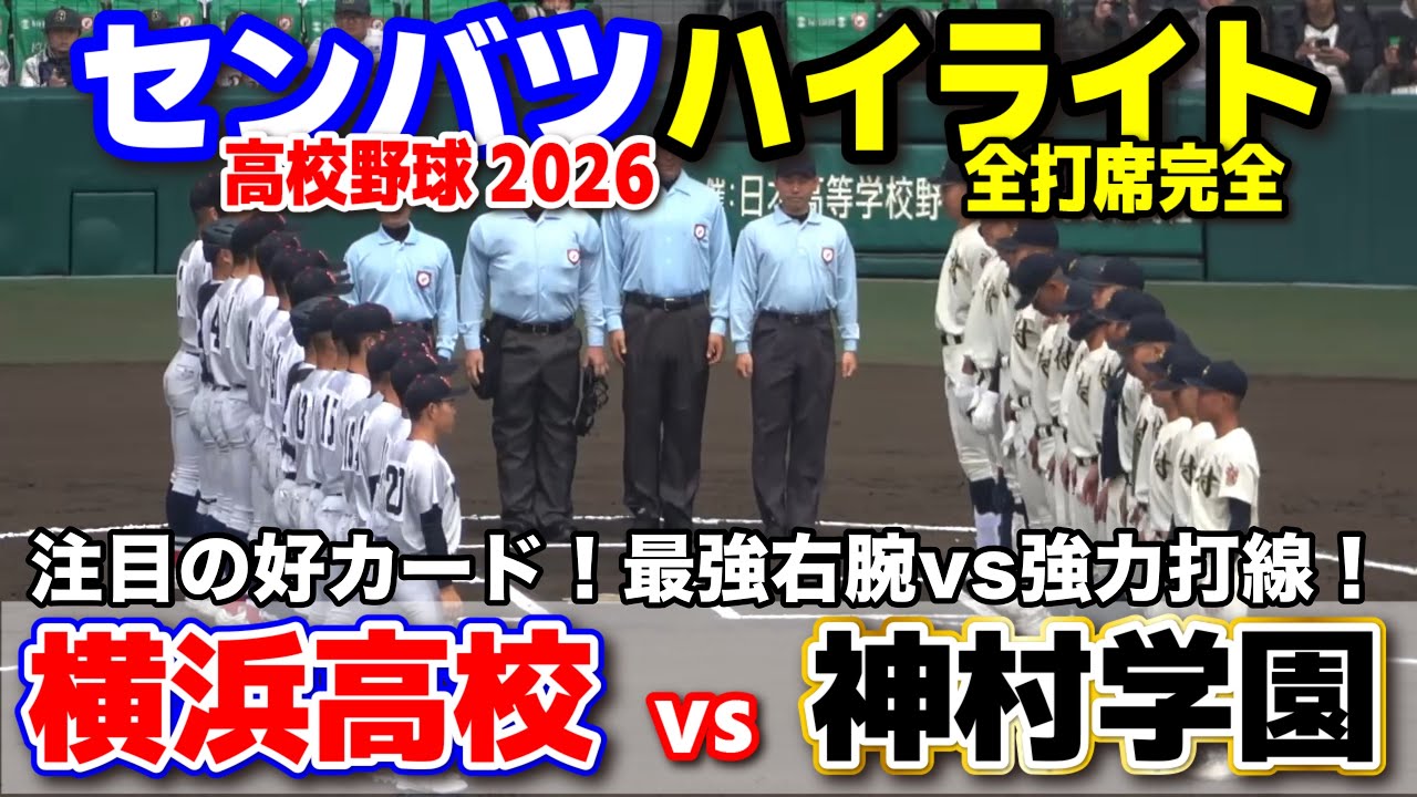 【高校野球 甲子園】 横浜(神奈川)vs 神村学園(鹿児島) 【第98回選抜高校野球 1回戦 全打席ハイライト】 横浜高校 2026.3.20 センバツ