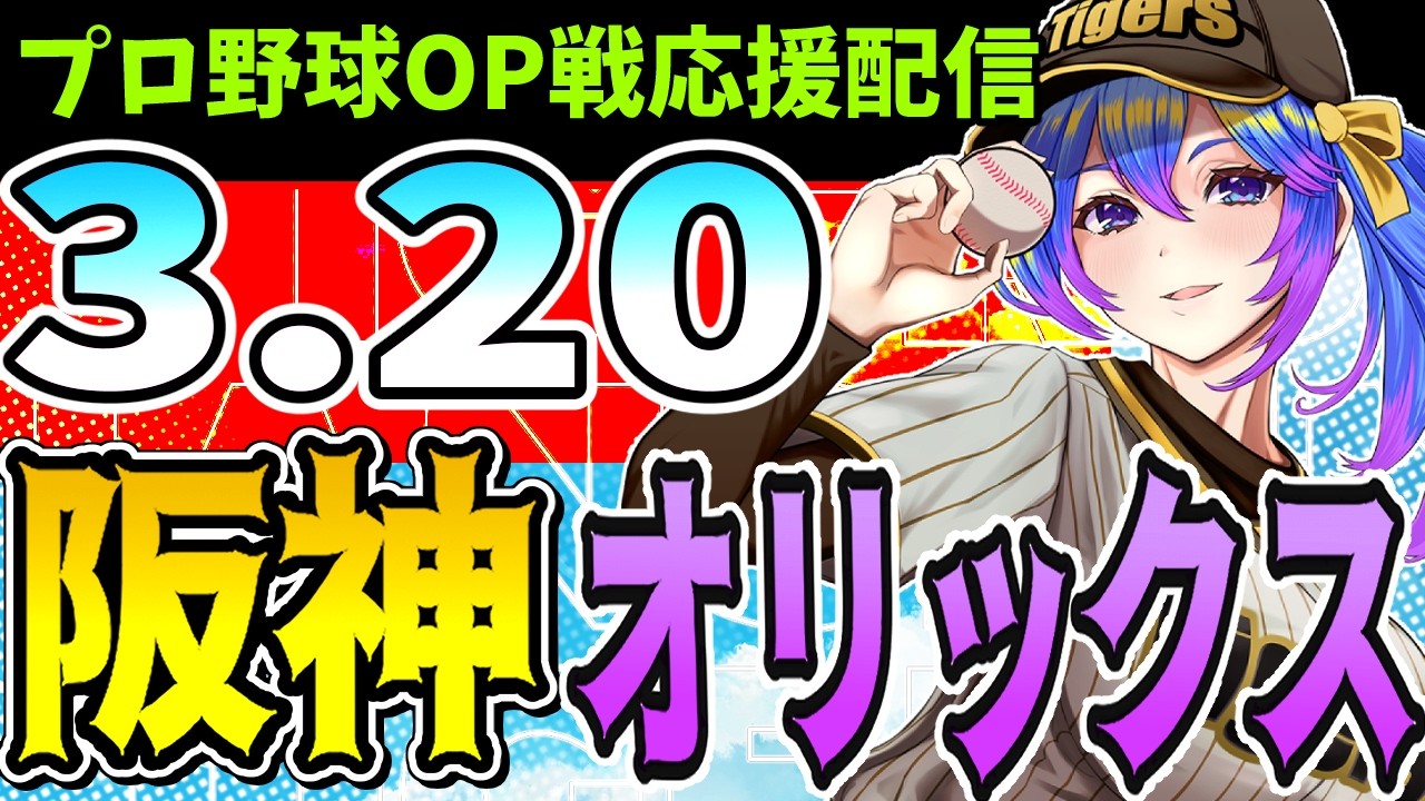 【阪神オリックス🔴LIVE】3/20(金)阪神タイガースVSオリックスバファローズ のプロ野球同時視聴ライブ!阪神ファン、オリックスファン歓迎!!!【プロ野球速報/プロ野球ライブ/女性Vtuber】