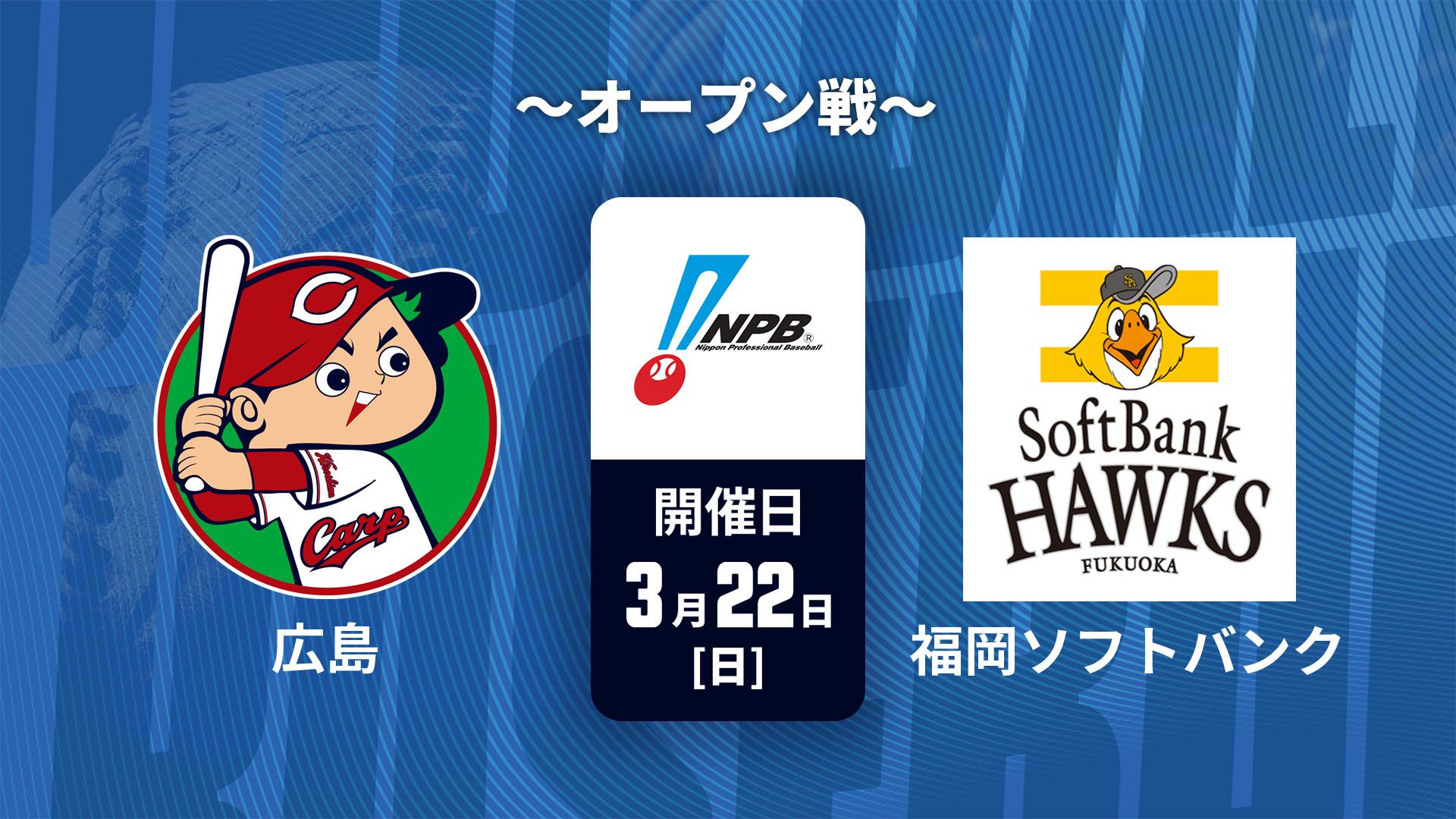プロ野球は2026シーズンのオープン戦(春季非公式試合)が3月22日(日)に開催。広島東洋カープと福岡ソフトバンクホークスが対戦する。