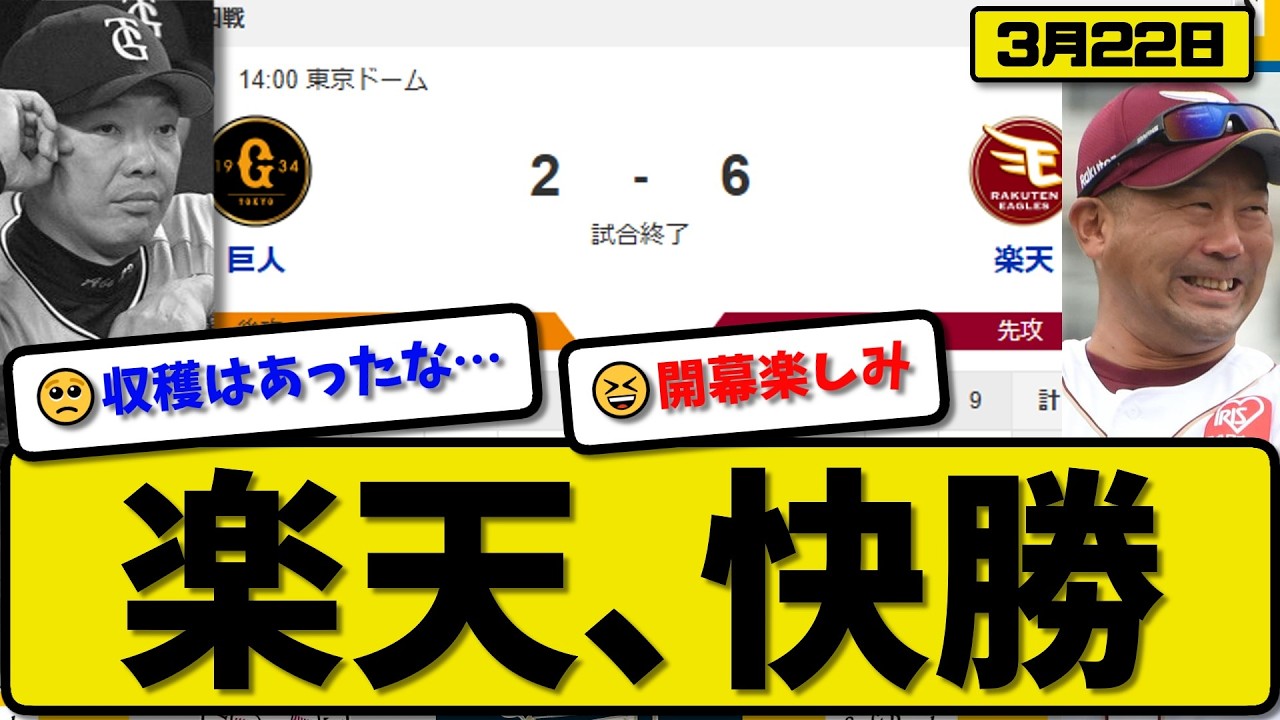 【オープン戦】楽天イーグルが読売ジャイアンツに6-2で勝利…3月22日快勝…先発藤原4.2回1失点…ボイト&マッカスカー&浅村&辰己が活躍【最新・なんJ・2ch】プロ野球 #読売ジャイアンツ #東北楽天ゴールデンイーグルス #プロ野球 Tohoku Rakuten Golden Eagles東北楽天ゴールデンイーグルス NPBHUB.COM | The Fanbase of Nippon Baseball & Nippon Professional Baseball