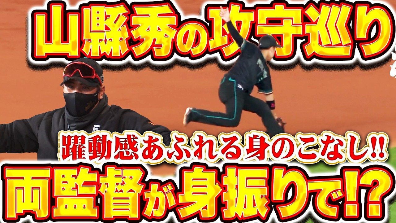 【赤マスク黒マスク】山縣秀『躍動感あふれる身のこなしで間に合った!ベンチでは新庄監督と池山監督が…』