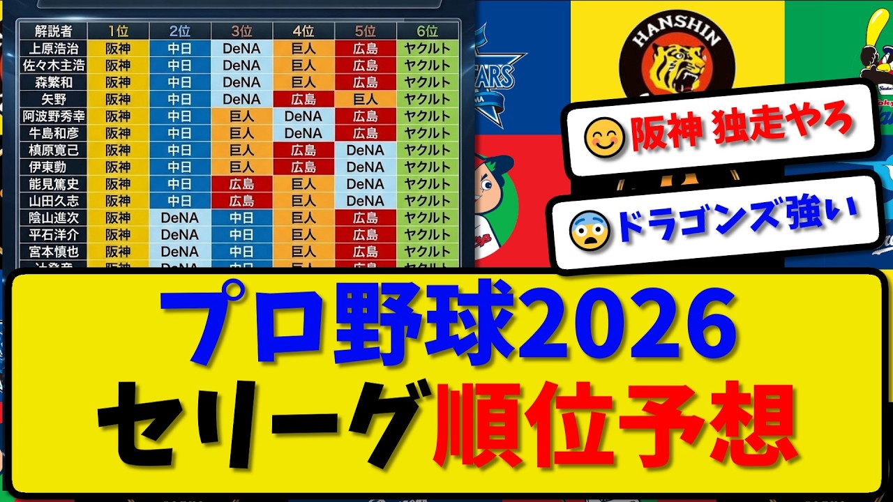 【順位予想】プロ野球2026 セ・リーグ順位予想…3月24日版…プロ野球解説者26人シーズン順位を予想【まとめ・なんJ・2ch】 #阪神タイガース #読売ジャイアンツ #広島カープ #横浜DeNAベイスターズ #中日ドラゴンズ #ヤクルトスワローズ #プロ野球 baseballBaseball newsベースボールやきゅう野球野球ボール NPBHUB.COM | The Fanbase of Nippon Baseball & Nippon Professional Baseball