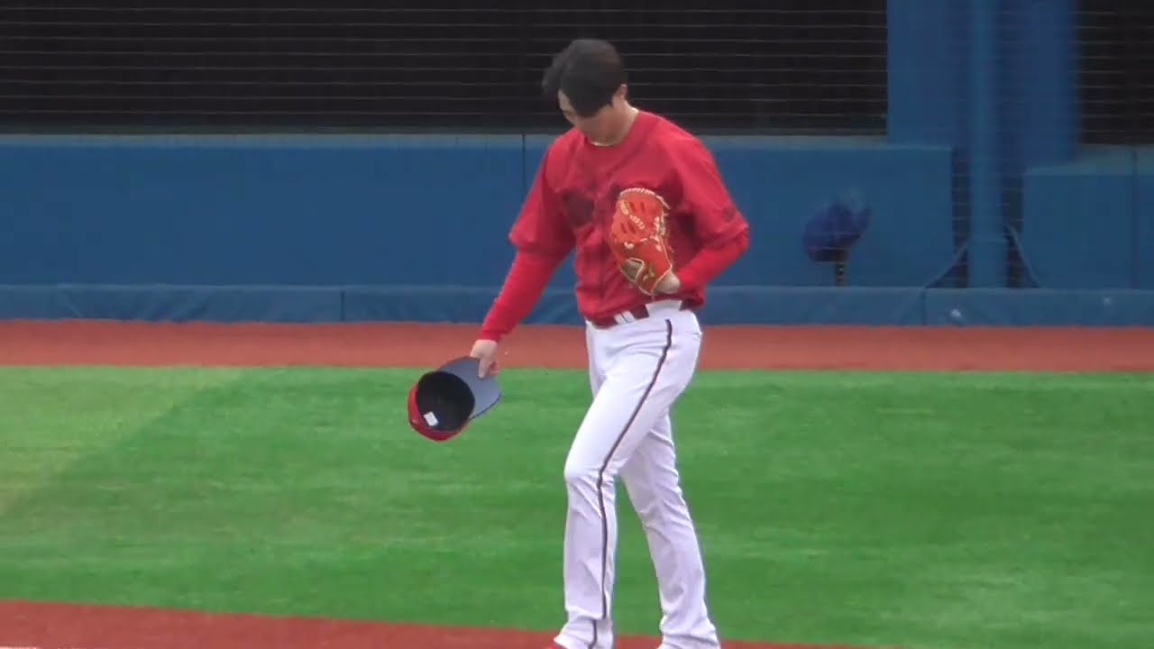 2026年3月10日 オープン戦・広島東洋 森下 暢仁 投手の準備投球(イニング中外)