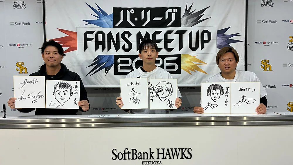 パーソル パ・リーグTV 公式YouTubeチャンネルで公開中の「パ・リーグ FANS MEETUP2026」福岡ソフトバンク編では、上茶谷大河投手、大関友久投手、津森宥紀投手が登場。普段は見られない3投手の自然体なやり取りの一部を紹介する