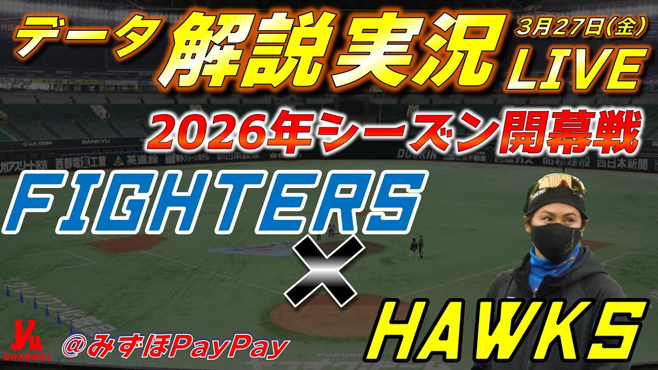 【日ハムライブ】開幕戦 北海道日本ハムファイターズ vs 福岡ソフトバンクホークス 3月27日(金) @みずほPayPayドーム データ解説実況LIVE