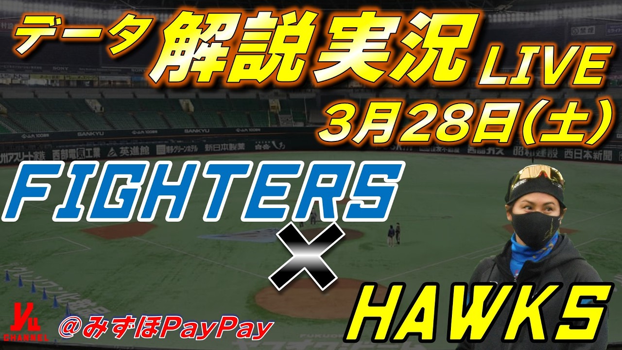 【日ハムライブ】 北海道日本ハムファイターズ vs 福岡ソフトバンクホークス 3月28日(土) @みずほPayPayドーム  データ解説実況LIVE
