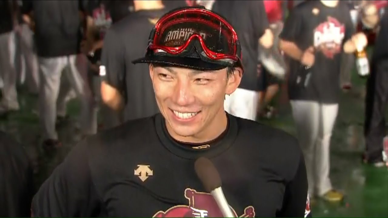 東北楽天ゴールデンイーグルス優勝ビールかけの様子。選手の喜びの声をインタビューで伝える。(9月26日 東北楽天ゴールデンイーグルス) 0926201309262013年9月26日Tokyo Yakult Swallowsイーグルスインタビューゴールデンイーグルスパ・リーグパシフィックリーグビールかけリーグ制覇優勝嶋基宏東京ヤクルトスワローズ東北楽天 NPBHUB.COM | The Fanbase of Nippon Baseball & Nippon Professional Baseball
