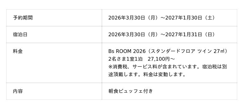 – 【1日1室限定】オリックス・バファローズコラボ「Bs ROOM 2026」宿泊プラン概要