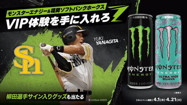 国内No.1エナジードリンク(※)のモンスターエナジーは、 2026年5月2日(土)、福岡ソフトバンクホークスの本拠地「みずほPayPayドーム福岡」にて、冠協賛試合「モンスターエナジーDAY」を開催いたします。