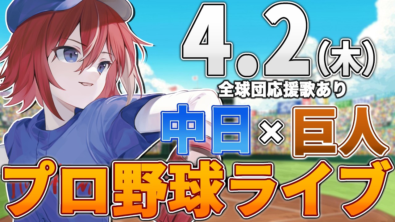 【プロ野球ライブ】中日ドラゴンズvs東京読売ジャイアンツ(巨人)のプロ野球観戦ライブ4/2(木)中日ファン、巨人ファン歓迎!!!【プロ野球速報】【プロ野球一球速報】中日ドラゴンズ 中日ライブ